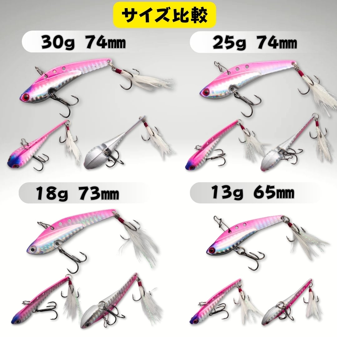 ABSや樹脂バイブレーションの細かい波動とは異なり、強めの波動とフェザーフックにより強烈にアピール!