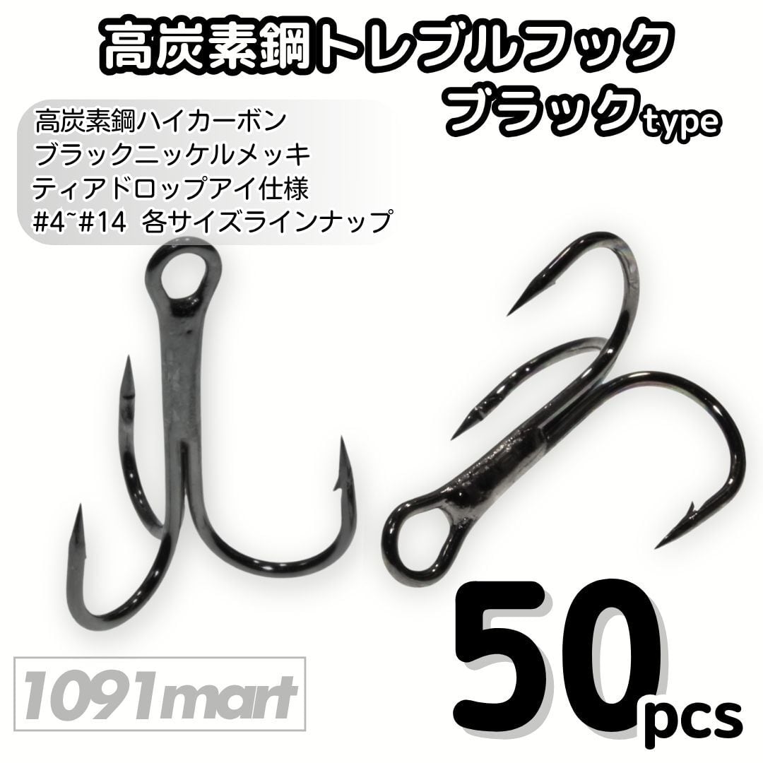 高炭素鋼 トレブルフック ブラックタイプ 50本セット トリプル ルアーフック ソルト対応 釣り針【1091mart】