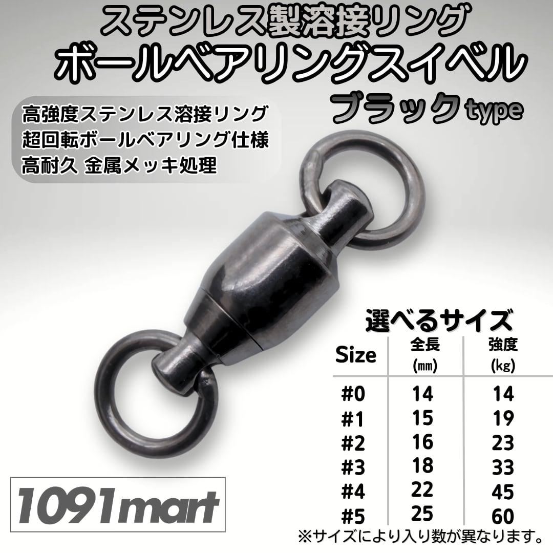ボールベアリング スイベル ステンレス製溶接リング ブラックタイプ ローリングサルカン ジギング等に!【釣り具の1091mart イレグイマート】