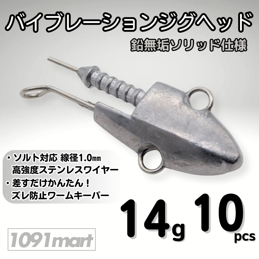 バイブレーションジグヘッド 鉛無垢 ソリッド仕様 14g 10個セット スイミングジグヘッド VJ風 シーバスルアー ワーム
