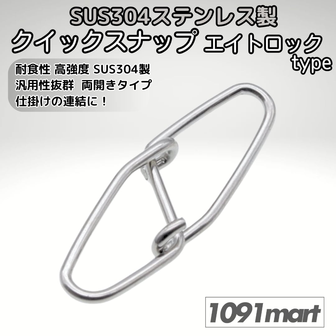 SUS304 ステンレス製 強力クイックスナップ エイトロックタイプ 両開き ルアー 仕掛けに! 防錆 スナップ 釣り 釣り具 釣具